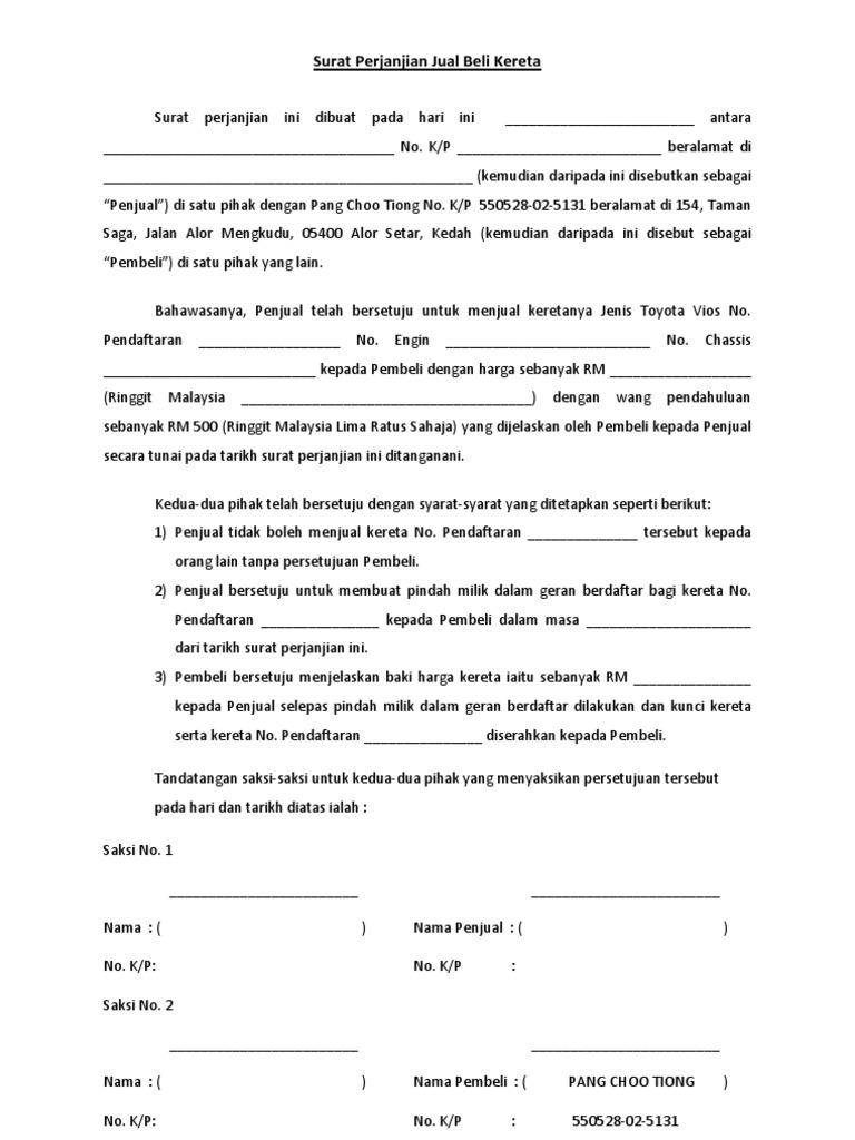 Surat Perjanjian Jual Beli Kereta A Pdf